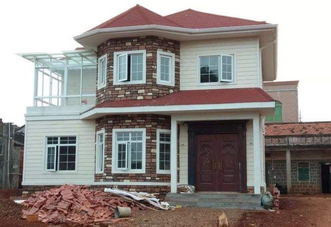 農村建房外墻材質用得較普遍的是瓷磚,是在刮白和乳膠漆之外比較實惠的裝飾方法,價格相對便宜,硬度高,易于清洗、防火、防水,可以做出多種裝飾效果,而且瓷磚比較耐臟、可擦洗、壽命長。在輕鋼別墅的外墻裝飾也可以使用,但是這種瓷磚裝飾比較容易脫落,有安全隱患。因此在之后的施工中,此種外墻材料的使用也在慢慢的減少。